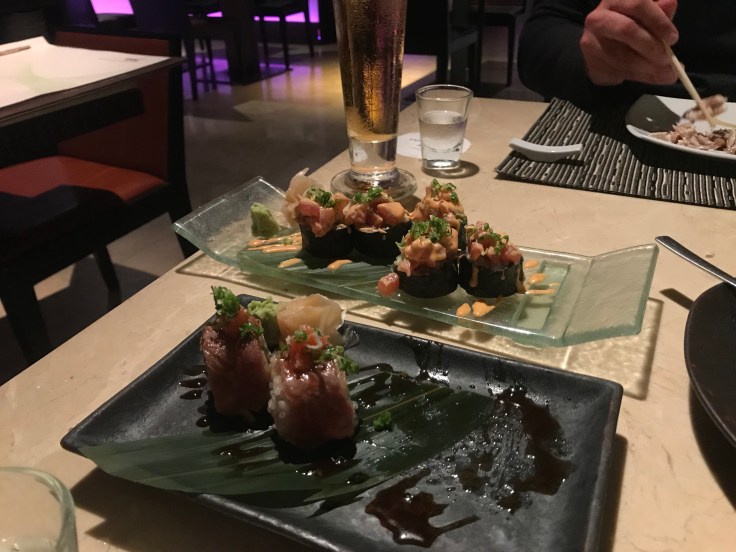 We worked up quite an appetite and were in desperate need of a good meal. We decided to go to Tsu, Japanese restaurant in the J.W. Marriott hotel. The food was AMAZING! It is hands down the best sushi restaurant I have been too. We sipped sake, enjoyed Hamachi and tried fish cheek for the first time.