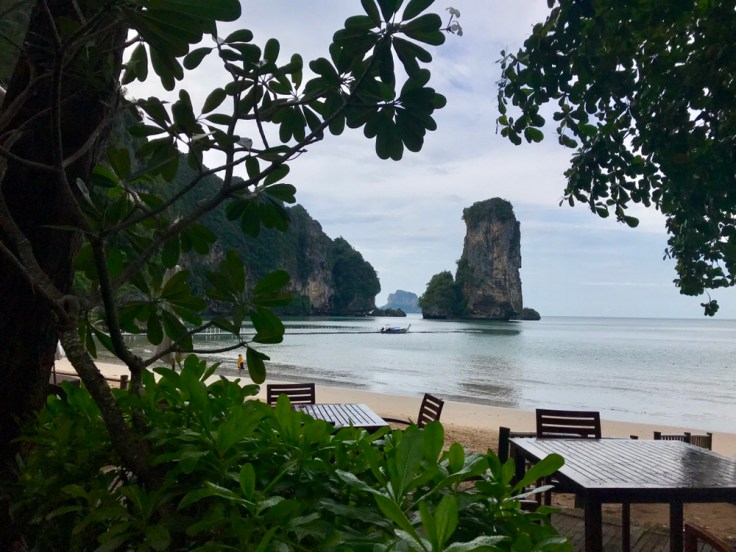 The next day, we took a long tail boat from the Centara boat dock to Railay Beach. Wow! This place was spectacular. We grabbed breakfast, walked along the beach and shopped for a few souvenirs before hiring a long tail to take us on a private tour of Phang Nga Beach, Phra Nang Cave and the four islands – Tup, Poda, and Chicken. The weather was great allowing us to really appreciate the blue green water, limestone cliffs and bright white sand. The private tour allowed us to miss a lot of the tourists so it felt like we had the islands all to ourselves.