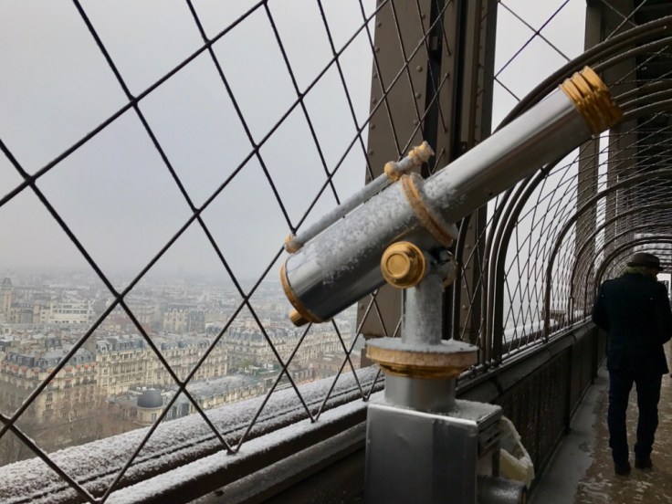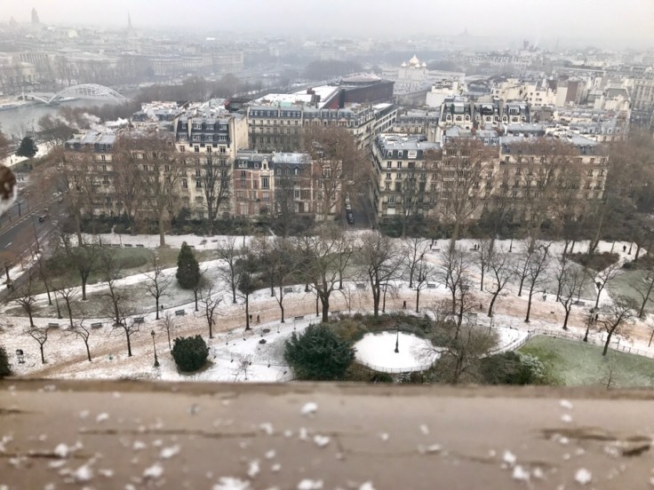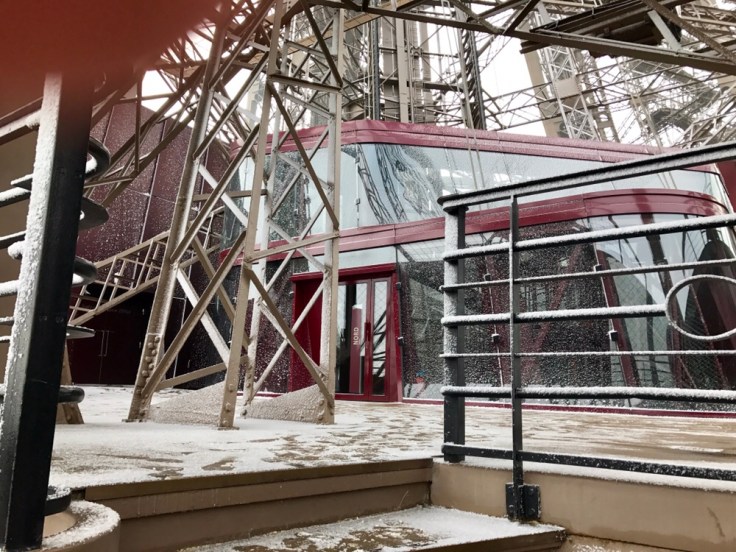 We had lunch at the Eiffel Tower. While this is a super touristy thing to do, we thought it was a great way to see the city. Plus, it started snowing so we were really glad to be inside.