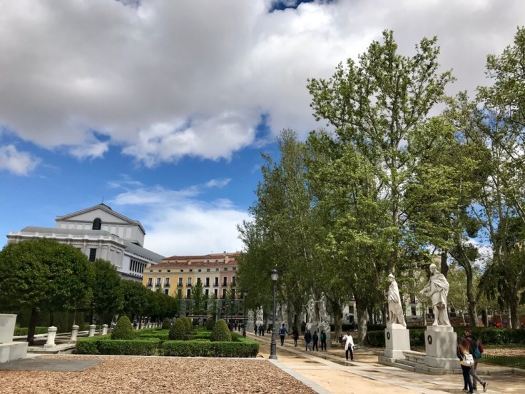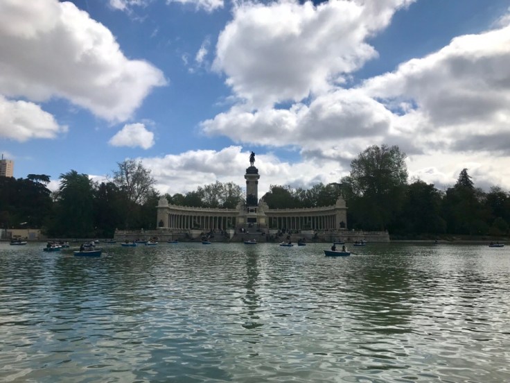 We arrived at Madrid Atocha station after a quick train ride from Barcelona. We grabbed a taxi, dropped off our bags at our hotel and headed straight to Retiro Park. Outside of the park, we were introduced to the female sculptures that adorned the city. The four outside of the park gates may have been my favorite – the back drop is absolutely stunning.