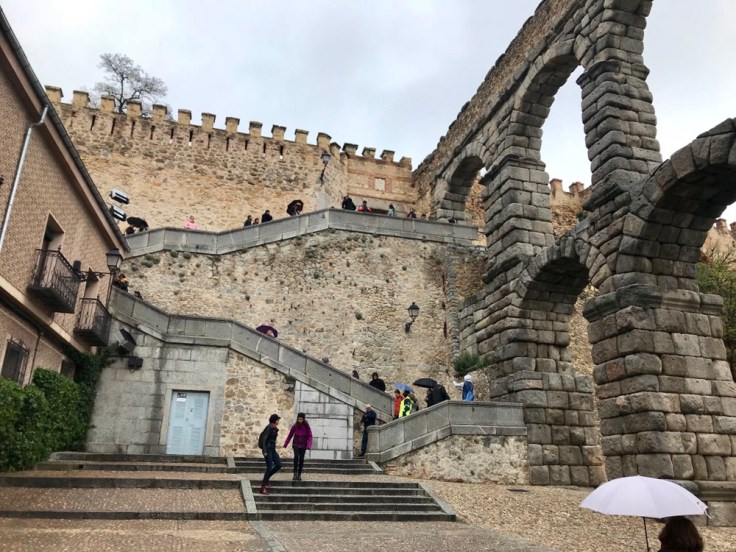The next morning, we decided to take the train to Segovia. It’s a quick 40-minute ride and we were excited to see the city’s crown jewel, the Aqueduct. We knew it would be cooler in Segovia than Madrid but we weren’t expecting to see snow upon arriving at the train station. We weren’t quite dressed for the occasion but didn’t let that slow us down one bit.