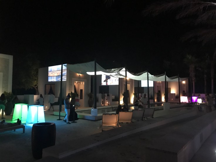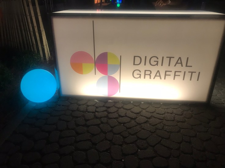 After dinner, we headed to Ayls Beach to experience Digital Graffiti for the first time. I must say, Digital Graffiti was awesome! Artists from around the world submit their digital works to be on display throughout the all-white neighborhood. The art was literally displayed on the side of each home. There were some interactive pieces too allowing event goers the opportunity to get more involved in the work.