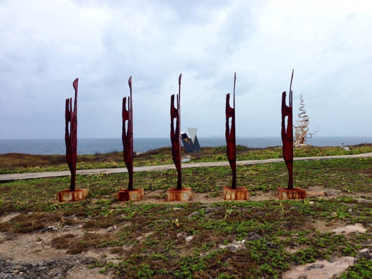 After a few lowkey days, we took the ferry to Isla Mujeres for the day. I must say, this was a highlight of the trip. We rented a golf cart as soon as we arrived and were off to explore the island. We had such a great time cruising around the island. Scooter rentals were available too, but the golf cart was much more our speed. Our first stop was Cliff of the Dawn, an outdoor sculpture garden. This was my favorite part of our visit to the island.