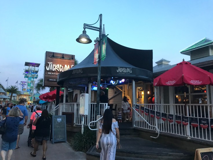 That evening we headed into downtown Destin to enjoy dinner at Jackacudas. The location was great – right along the marina. We sat outside and enjoyed watching the booze cruises come and go for the night. There are so many things to do in the area from restaurant bars and shops to zip lines.