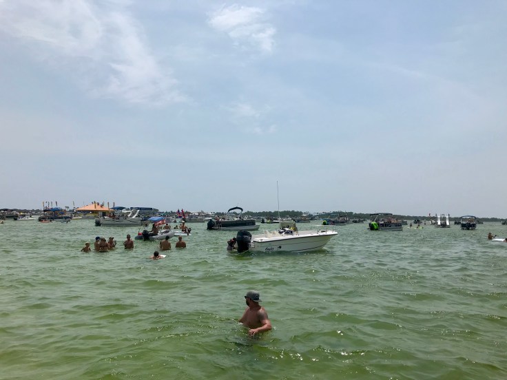 After some fun in the sun we rented a pontoon boat and headed out to Crab Island. This place is perfect for people watching – hundreds of boats meet up at the sandbar and hangout. There are even floating restaurants and bars. We spent the afternoon floating around and people watching before heading back to the resort for the night.